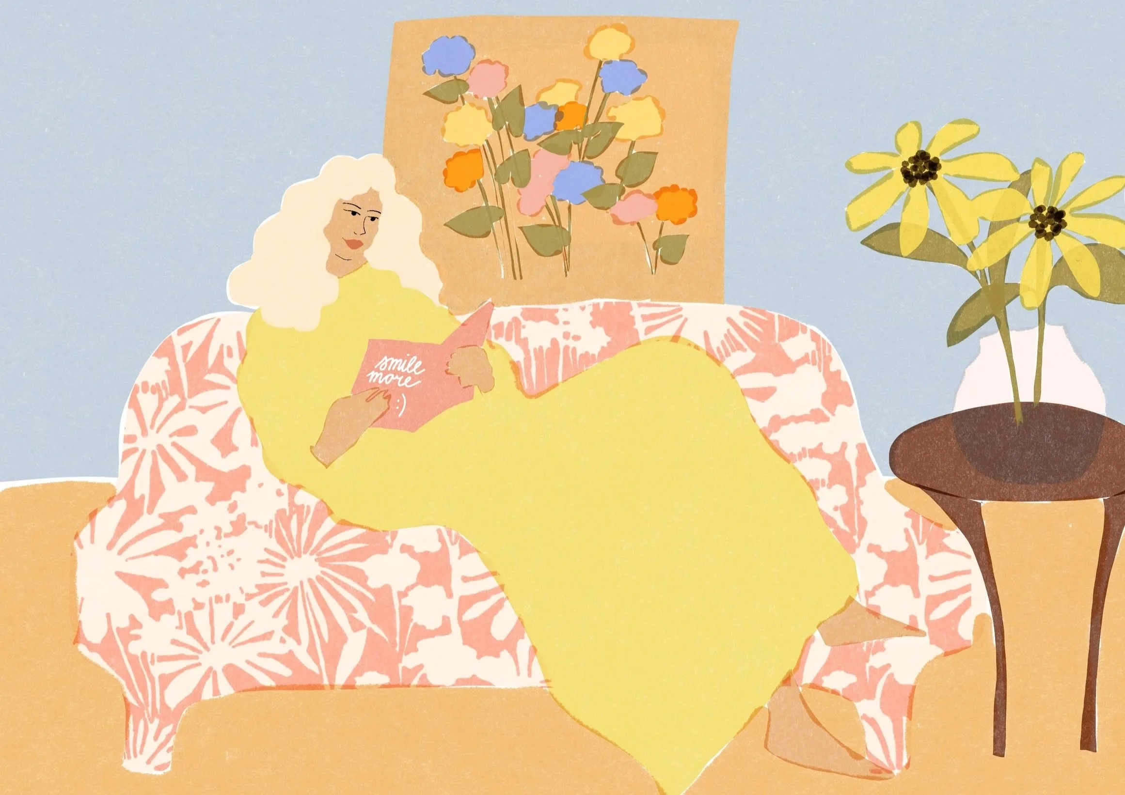 A smile is a universal symbol of happiness, kindness, and positivity. It can express joy, gratitude, or approval – and it can brighten the atmosphere around us. The illustration “The Smile” portrays a young woman at home, smiling quietly to herself in a moment of peace. It carries the message that we should smile more often – not only to others but also to ourselves.